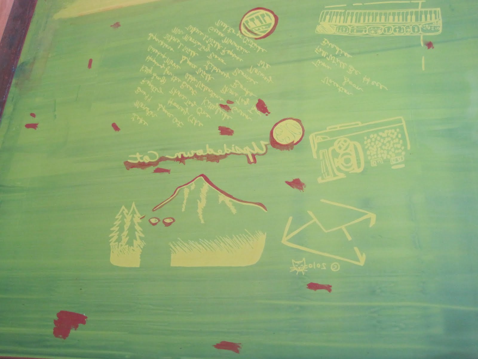 i currently have 3 colors out of 4 done for my album covers i'm making... it's been fun, and we're screenprinting them. and it's the first time i've done such a big edition. i think it's 198 covers... ha. and i need to take pictures of the 3rd layer! there were some technical difficulties, but i think they look really great!